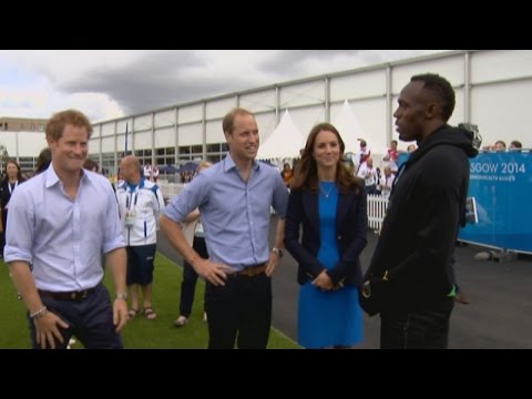Royals meet Usain Bolt at Commonwealth Games - Commonwealth Games Celebrity Race - Usain Bolt has been reunited with Prince Harry, two years after their infamous race. The Duke and Duchess of Cambridge were also in the athletes' village at the ...